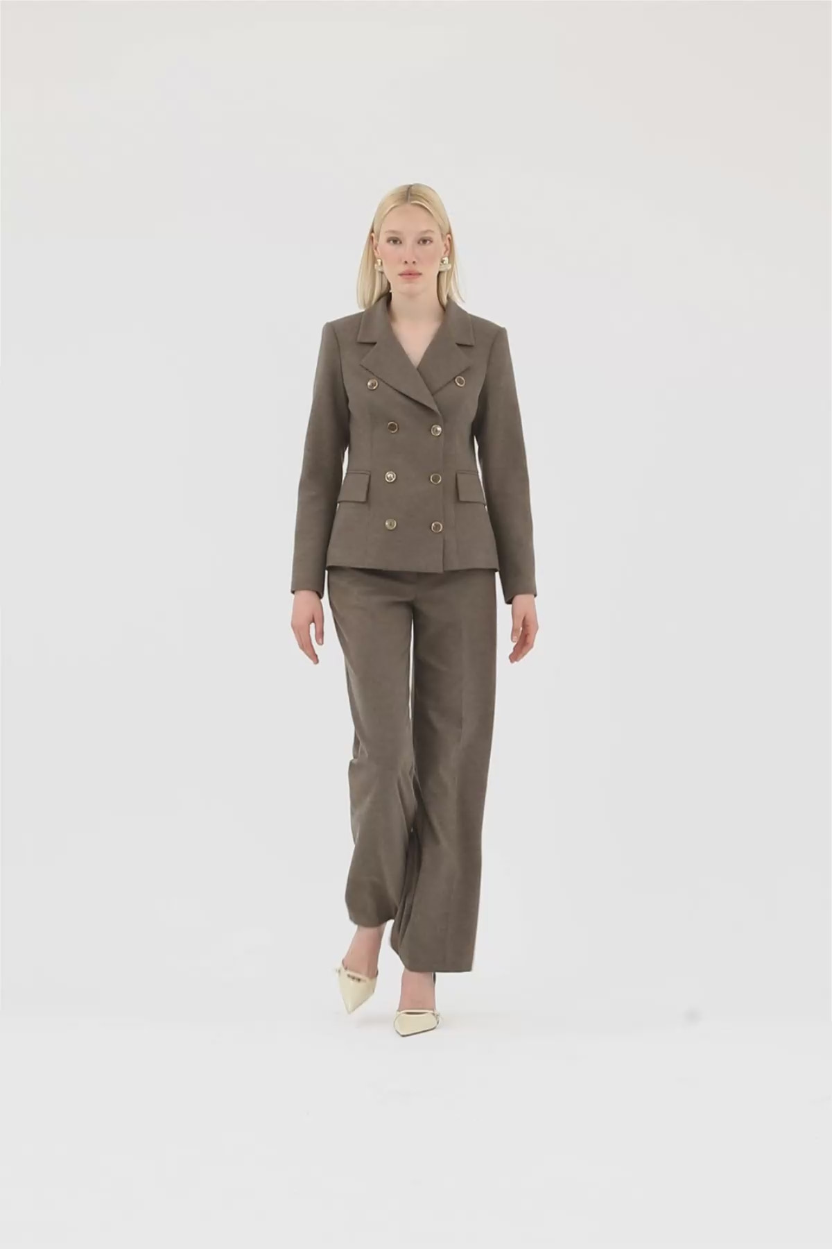 Kruvaze Kapamalı Ceket Ve Pantolonlu Takım