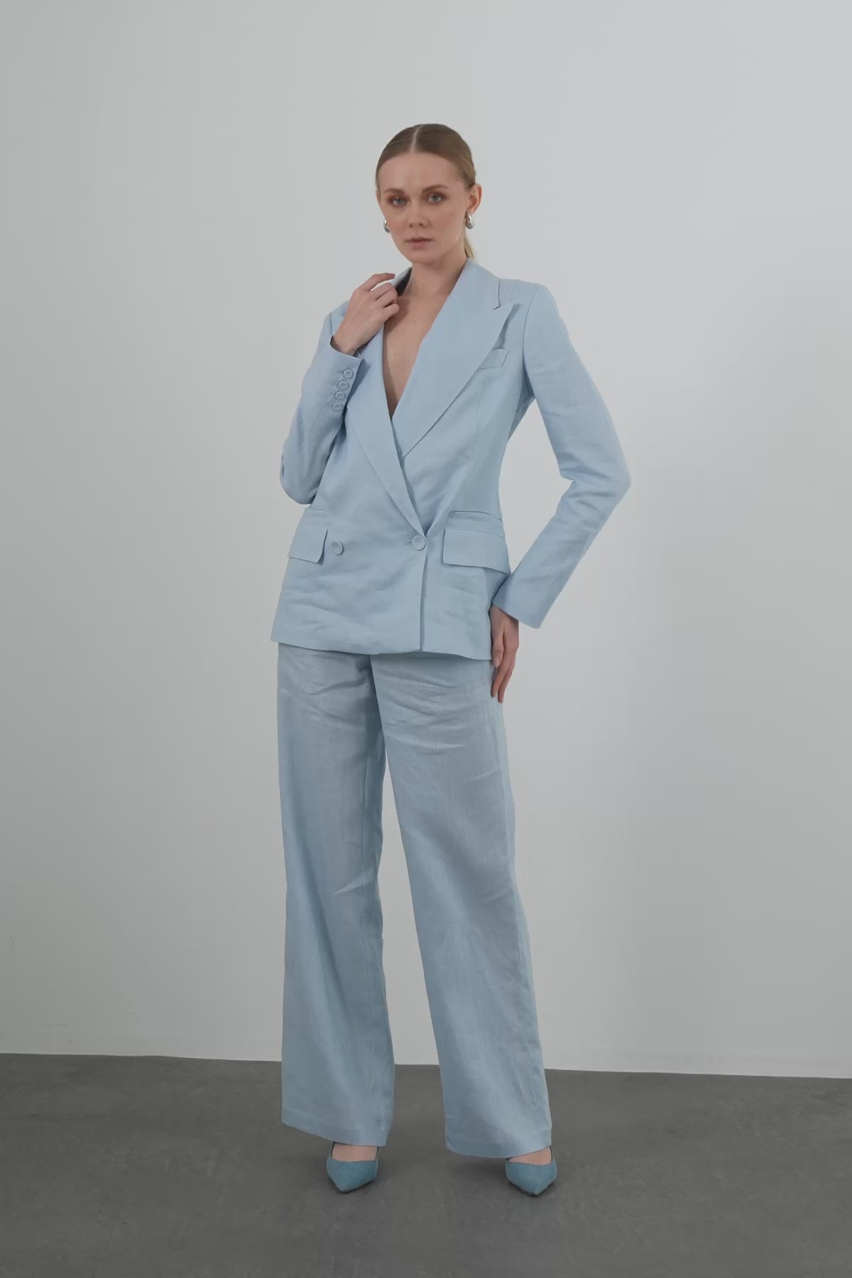 Kruvaze Kapamalı Uzun Kollu Keten Ceket
