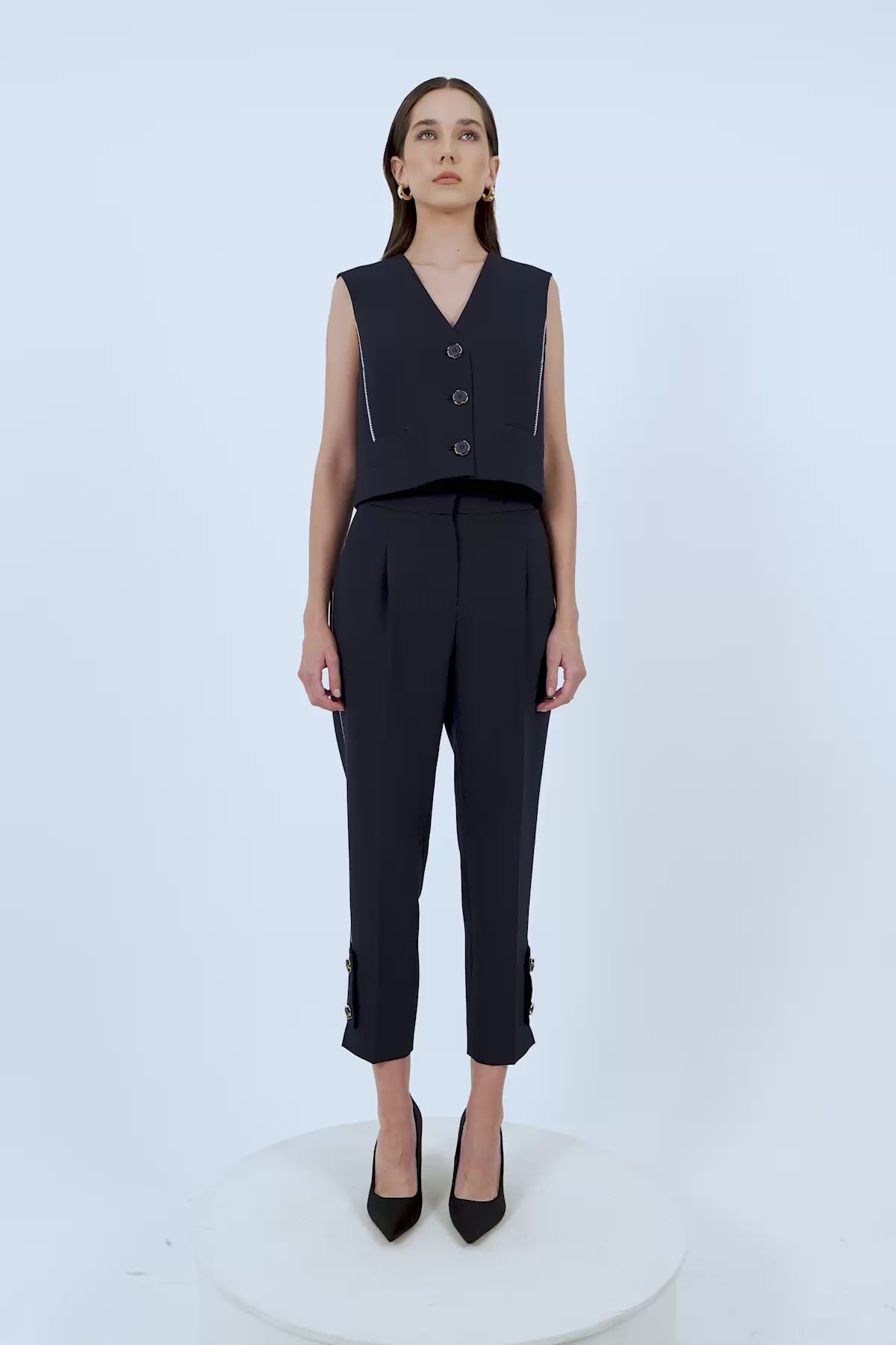 Kupları Nakışlı Düğme Detaylı Yelek