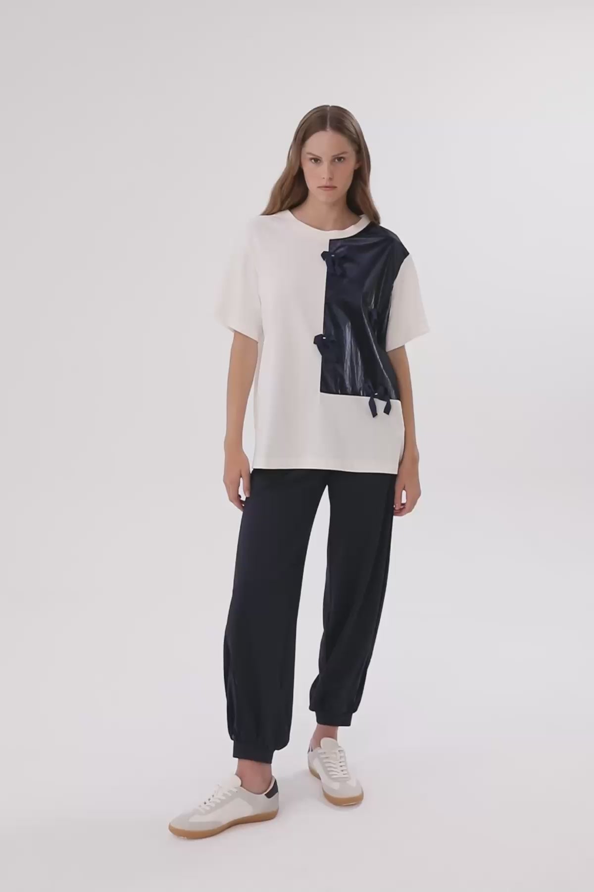Kurdele İşlemeli Yuvarlak Yaka Kısa Kollu Tshirt