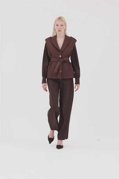 Kuşaklı Ceket Ve Pantolonlu Takım