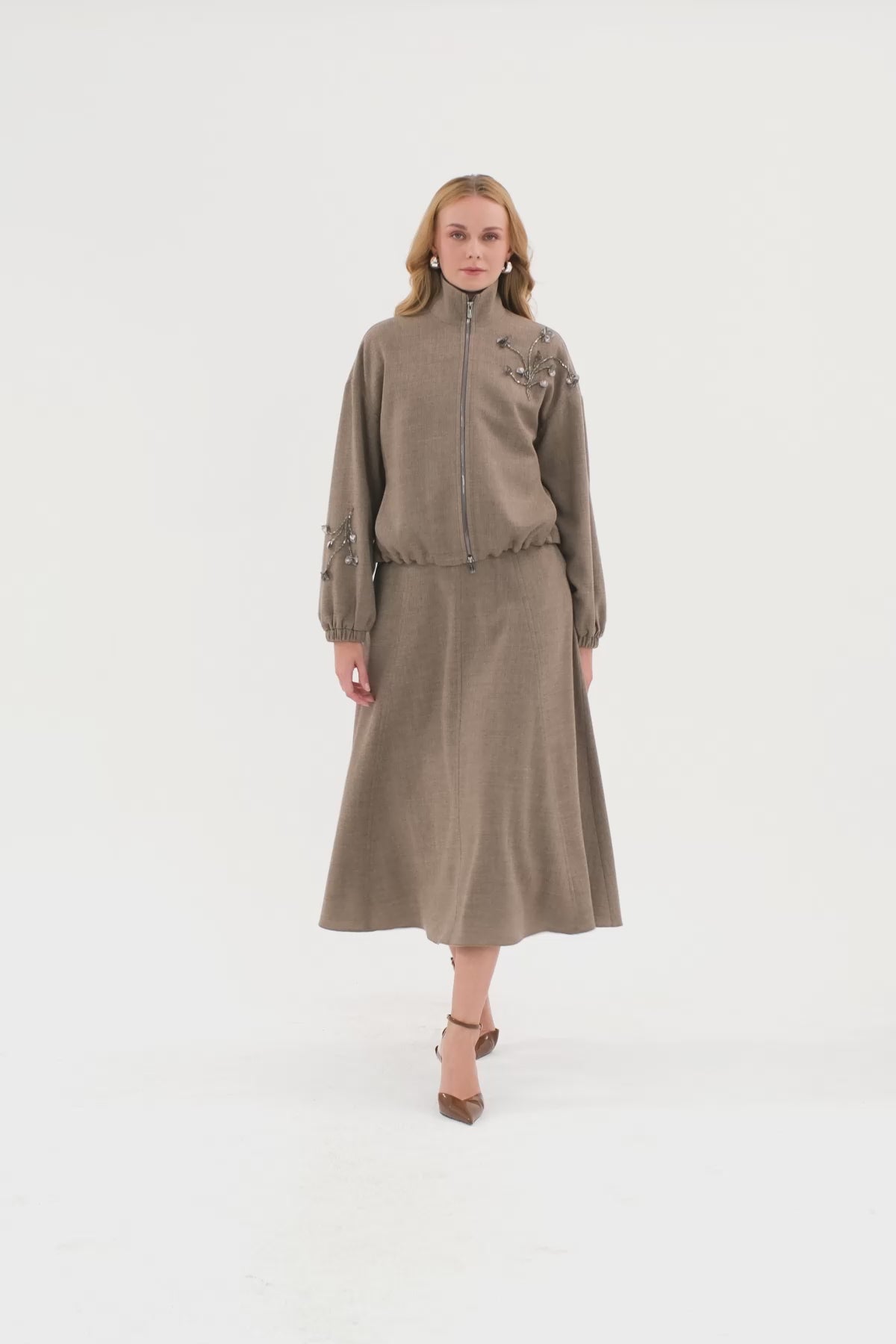 Metal Fermuarlı Yaka Ve Kol İşlemeli Ceket
