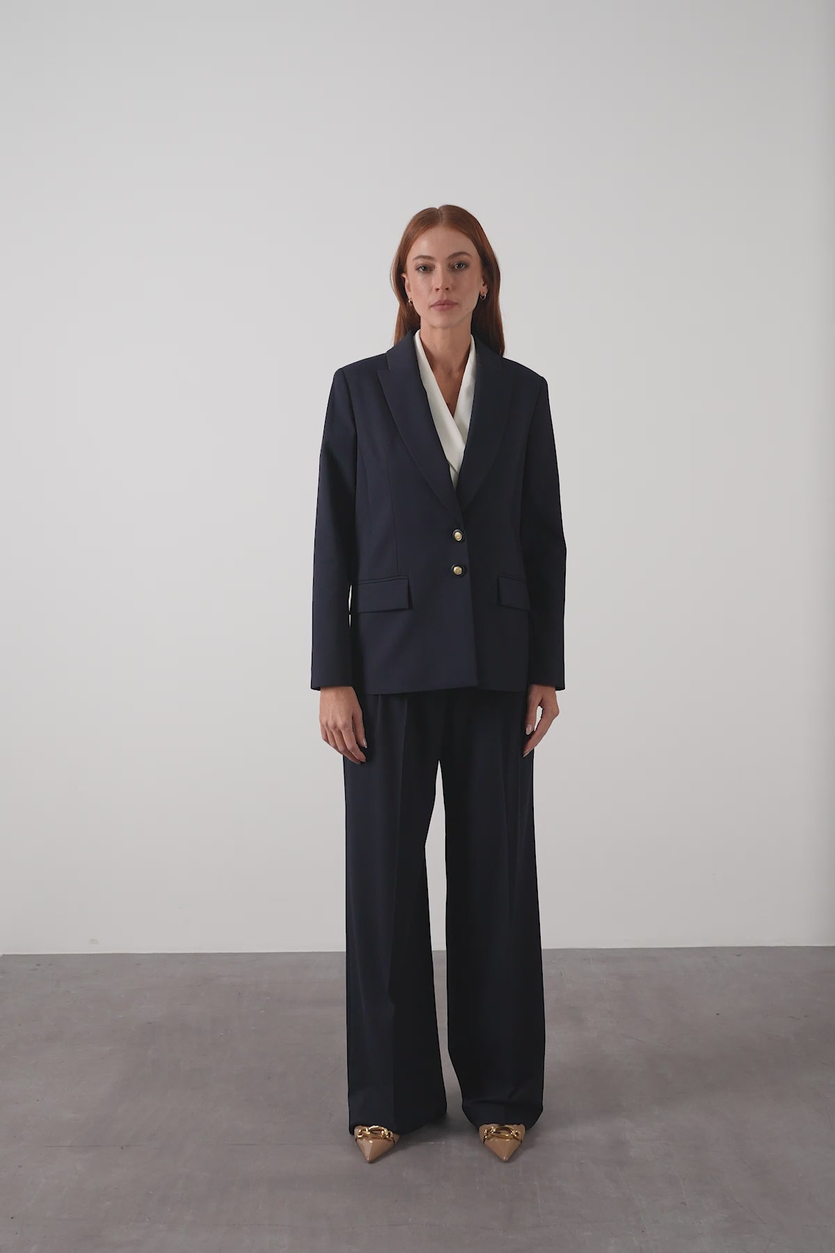 Mono Kapamalı Aksesuar Detaylı Palazzo Pantolonlu Takım