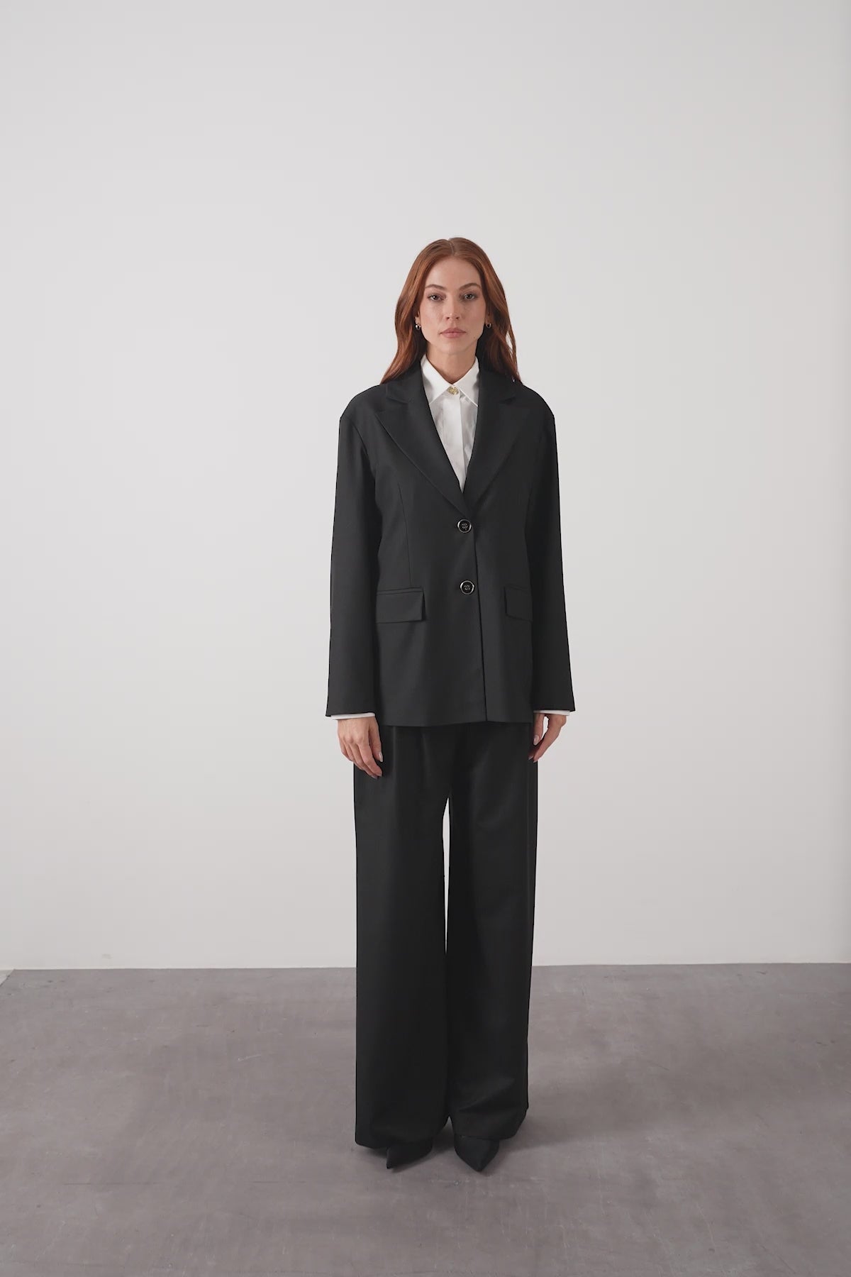 Mono Kapamalı Aksesuar Detaylı Palazzo Pantolonlu Takım