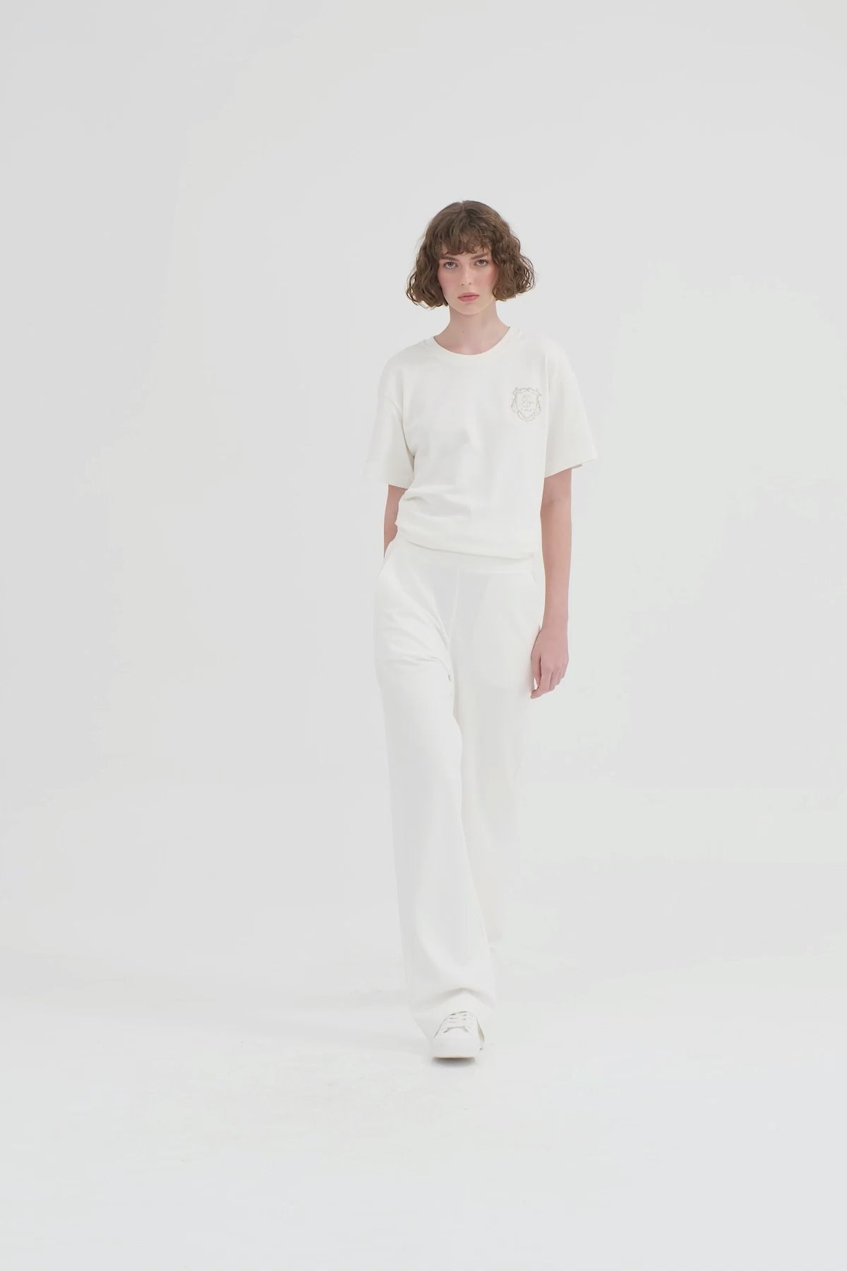 Nakış Detaylı Beli Lastikli Ekru Eşofman Altı