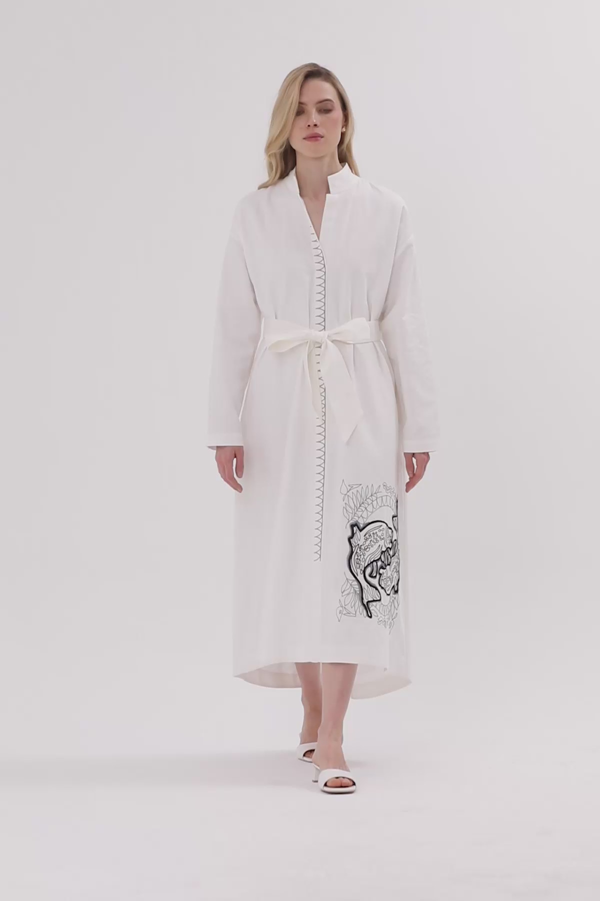 Nakış Detaylı Oversize Gömlek Midi Elbise