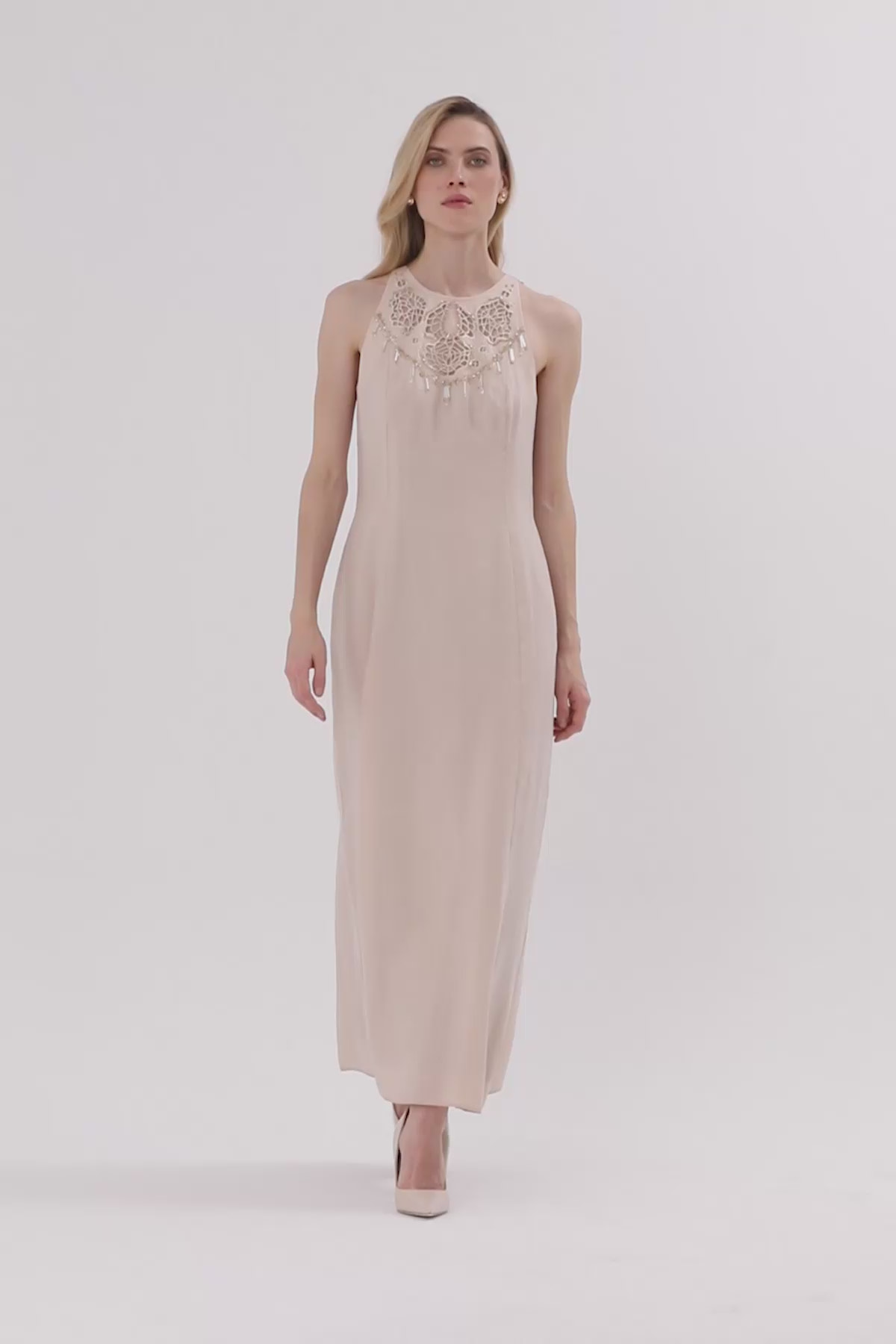 Nakış Detaylı Uzun Kolsuz Elbise
