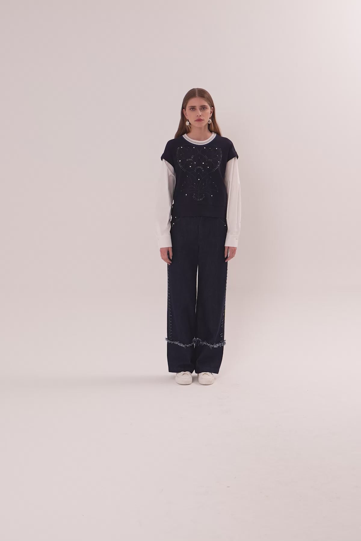 Nakış Detaylı Zincir Dikimli Uzun Kollu Bluz