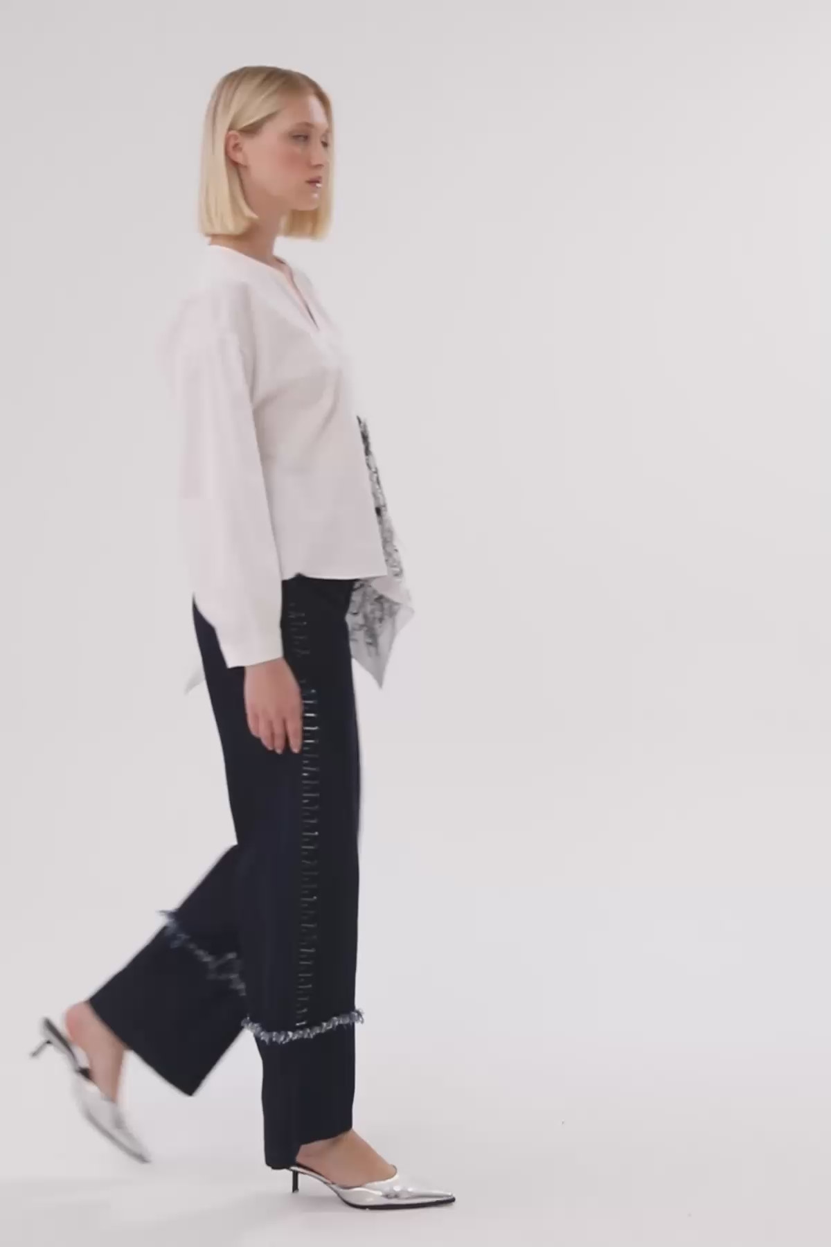 Nakış Detaylı Zincir Dikimli Uzun Kollu V Yaka Bluz