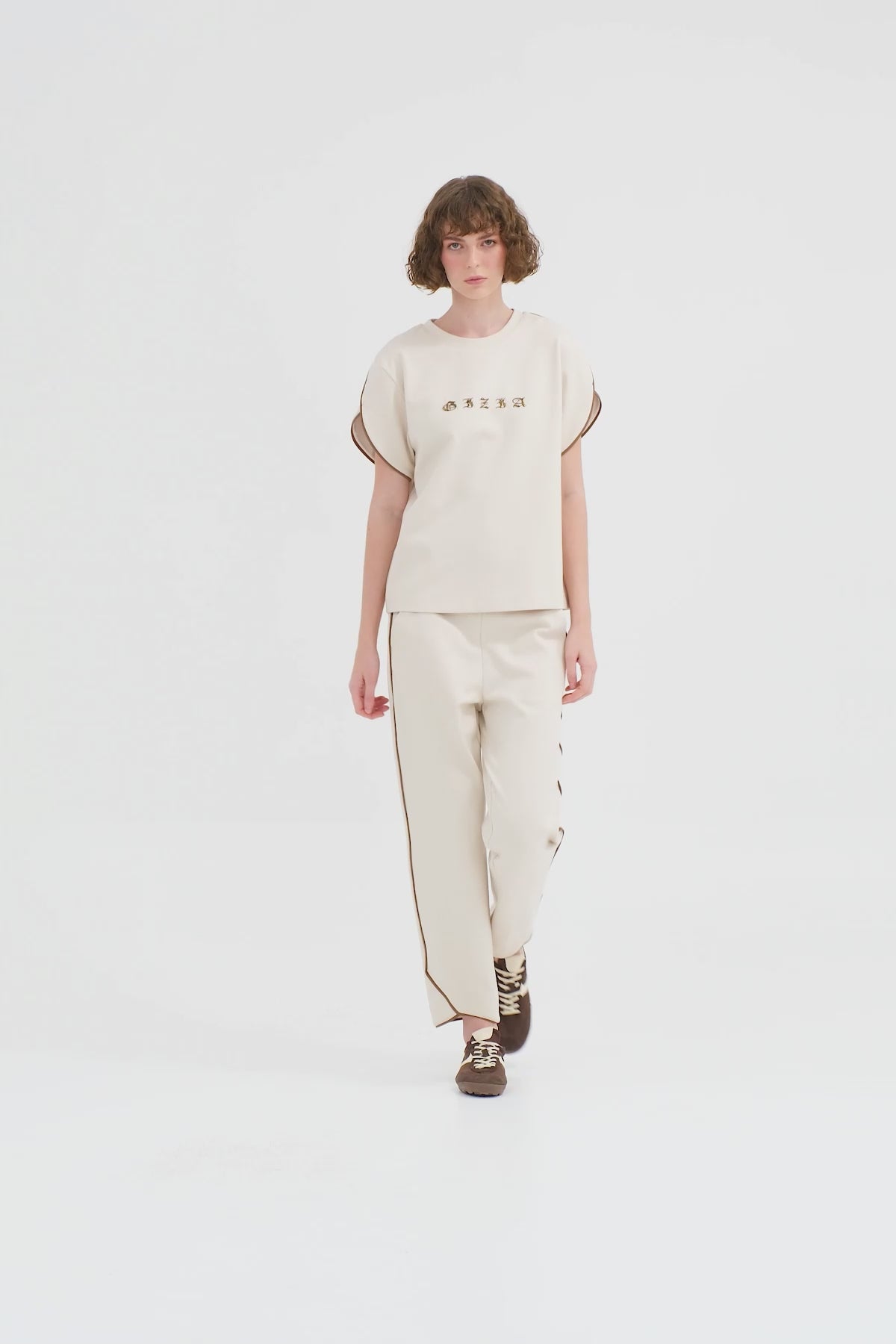 Nakış Ve İşleme Detaylı Bej T-Shirt
