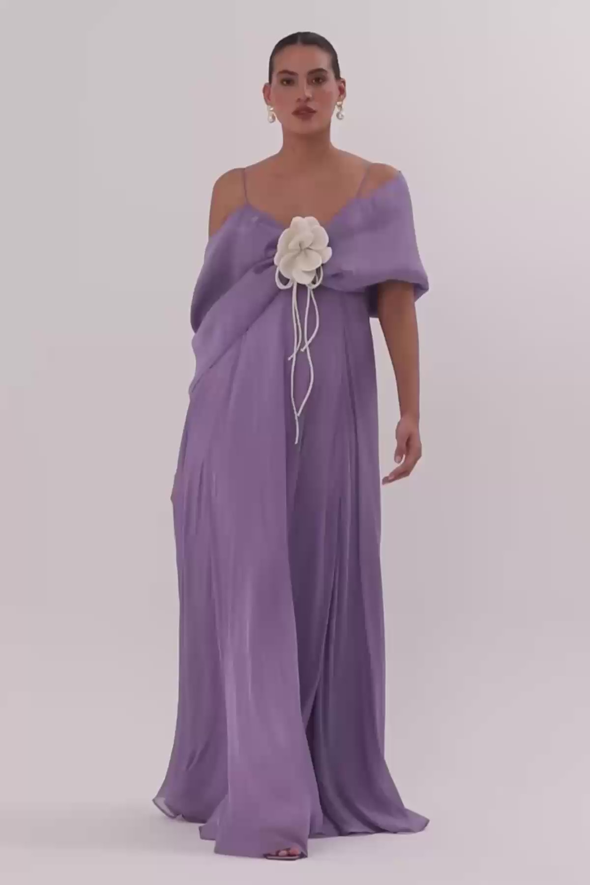 Omuz Drapeli Uzun Elbise