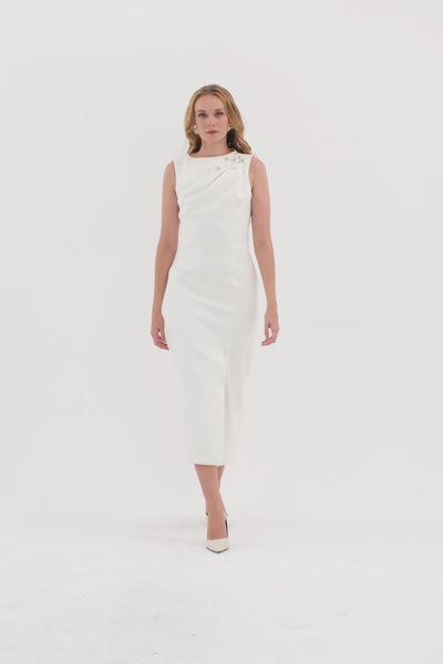 Omuzda Drepe Detaylı Yırtmaçlı Elbise
