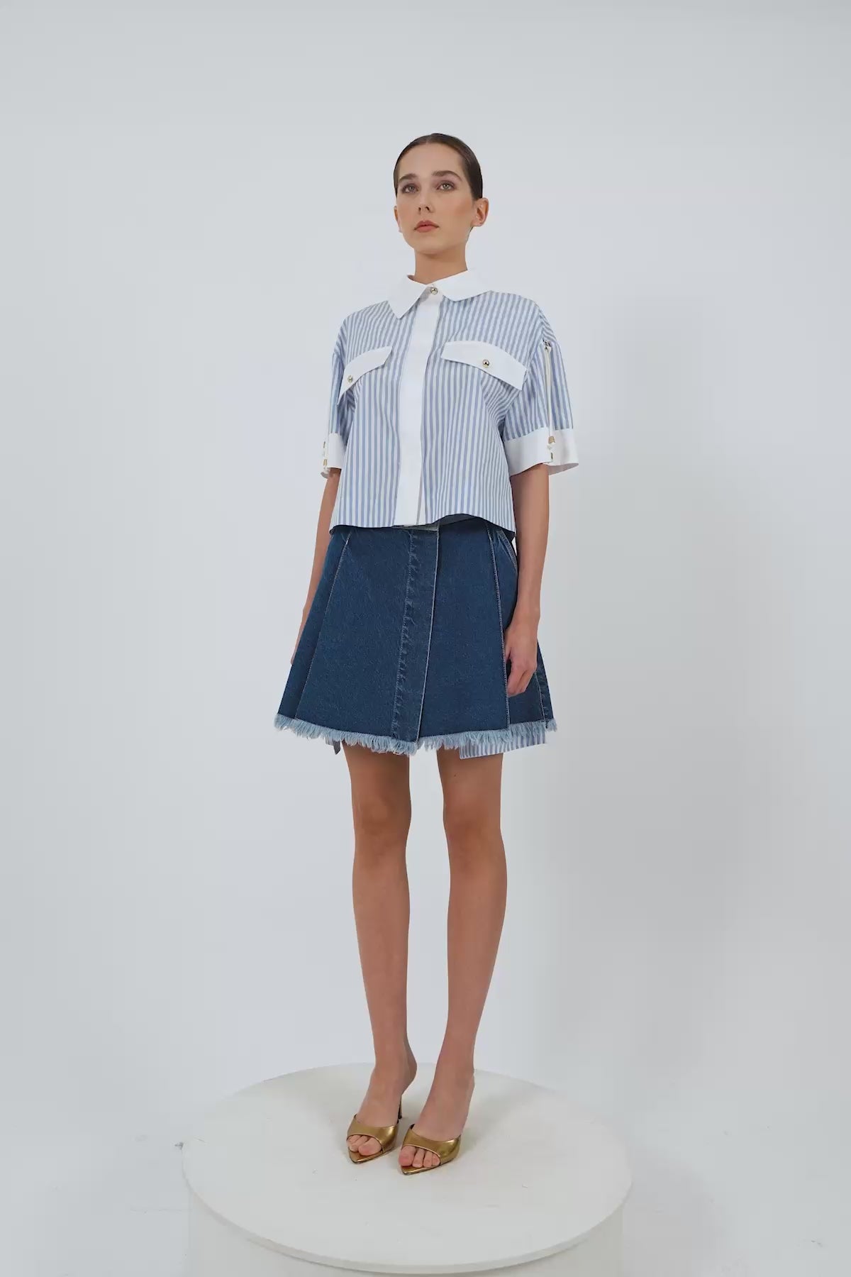 Omuzdan Sarkan Bağcık Detaylı Düğmeli Poplin Gömlek
