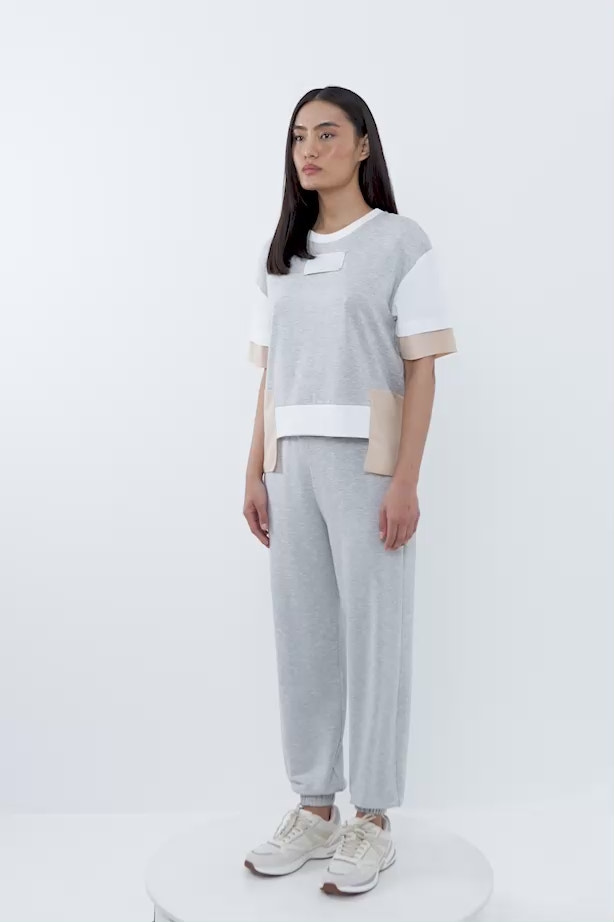Ön Beden Etiket Detaylı Asimetrik Model T-shirt