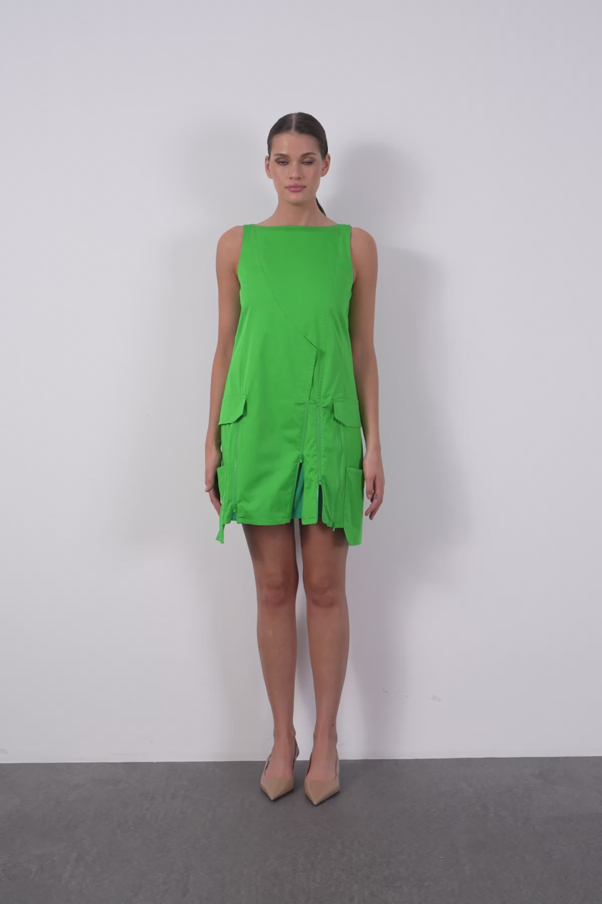 Ön Beden Fermuar Detaylı Kolsuz Mini Elbise