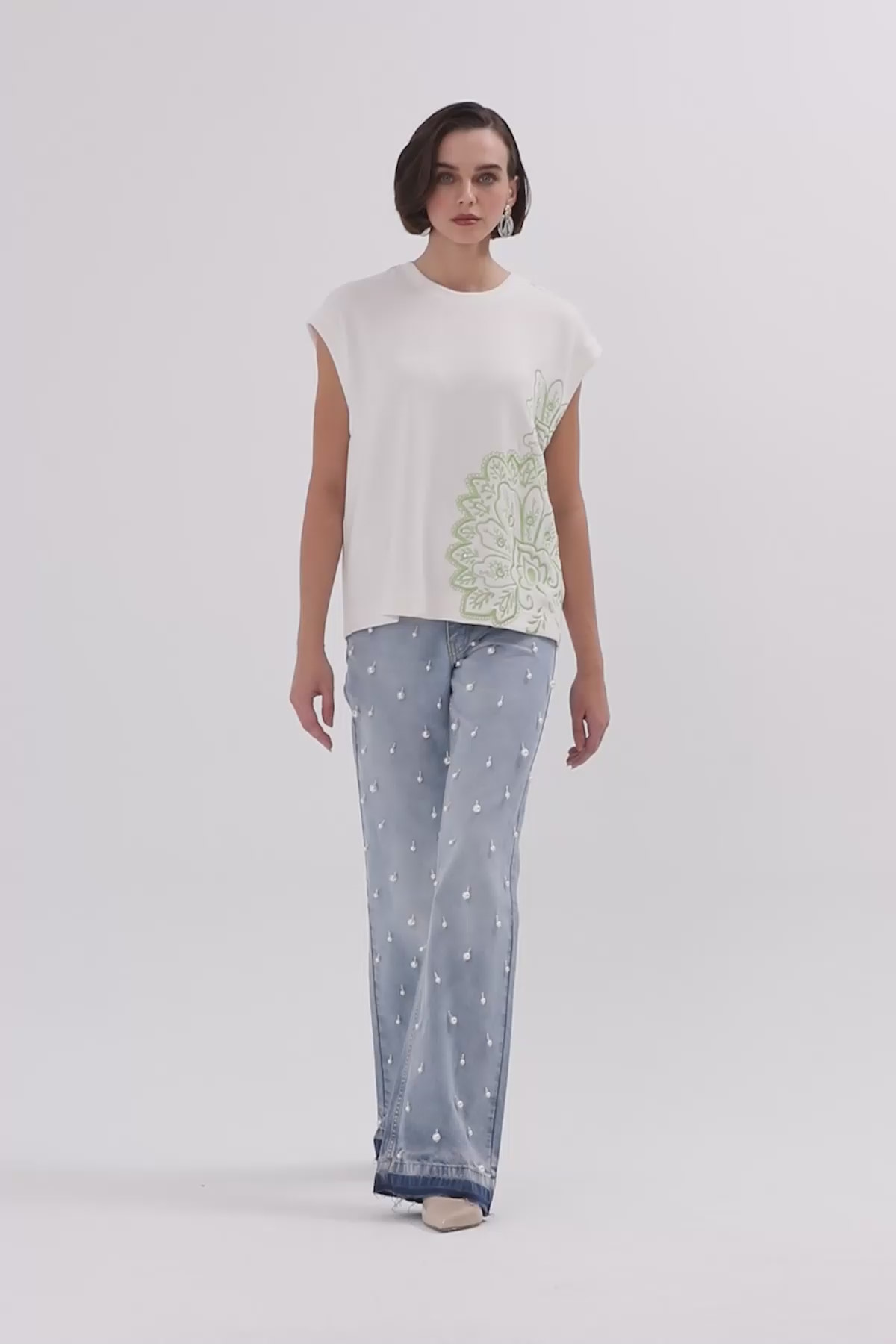 Ön Beden Nakışlı Ve Baskılı T-shirt