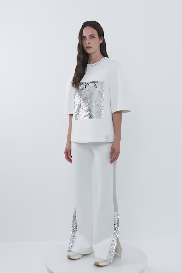 Ön Beden Payet Detaylı Yakası Ribanalı T-shirt