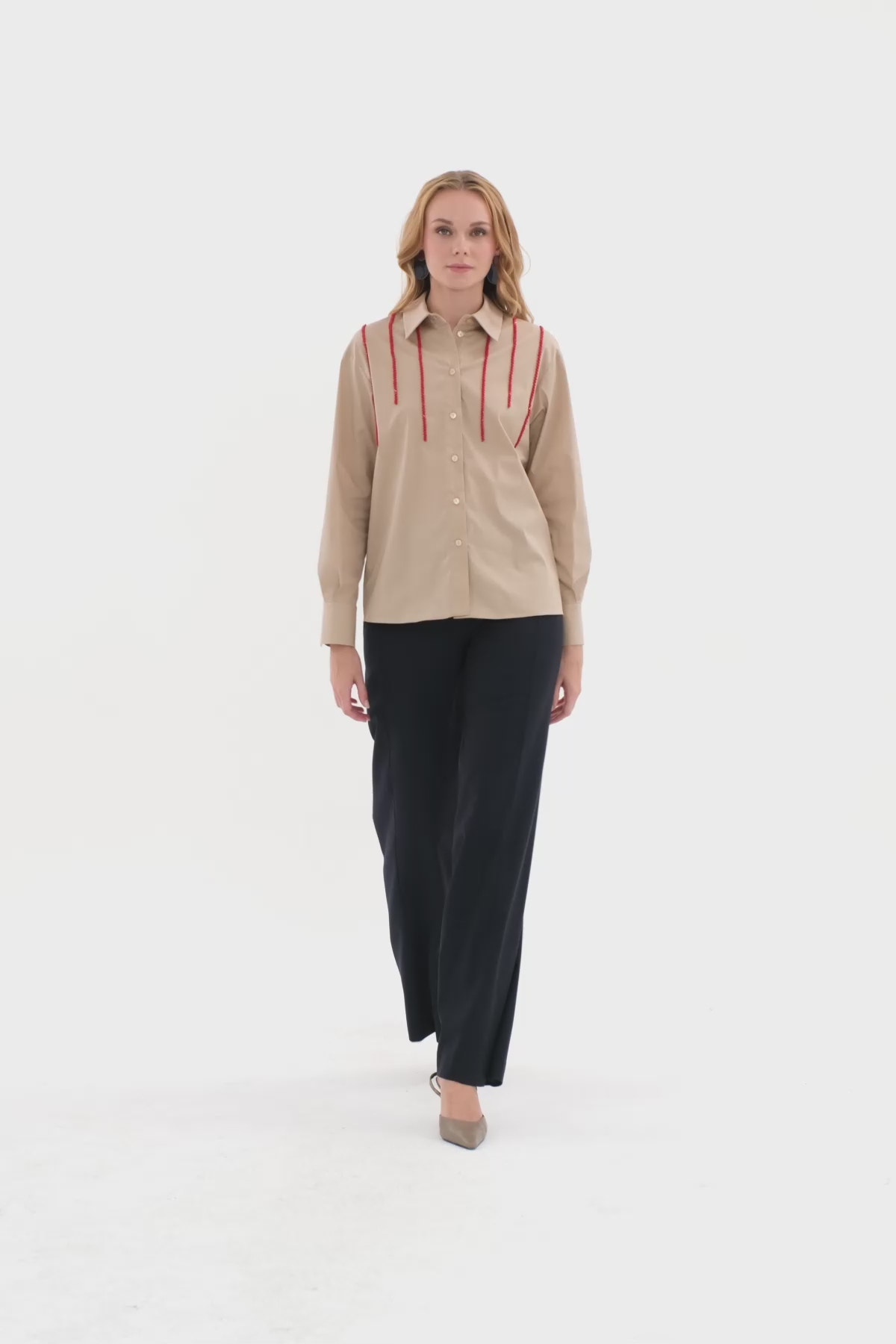 Gömlek Yakalı Boncuk İşlemeli Gömlek