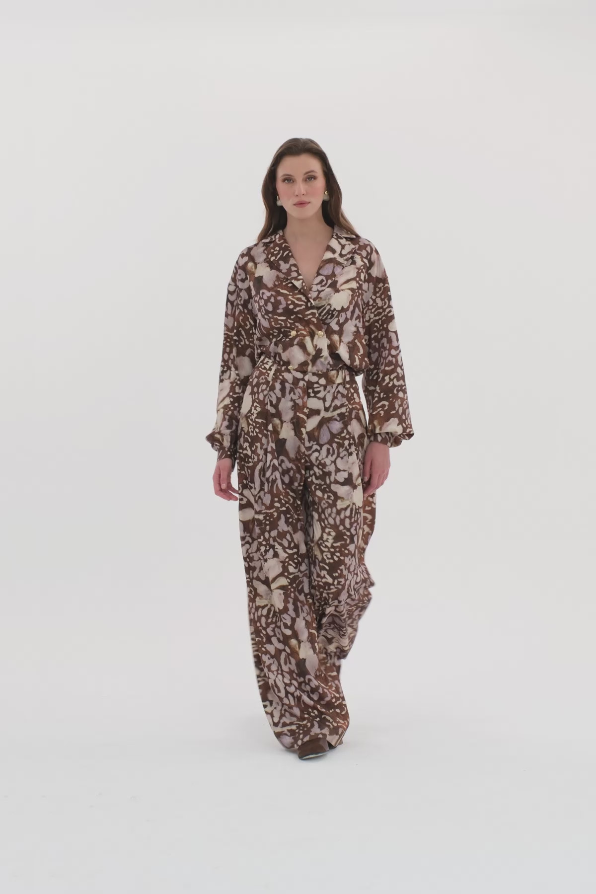 Ön Orta Fermuar Ve Agraf Kapamalı Bol Kadın Pantolon