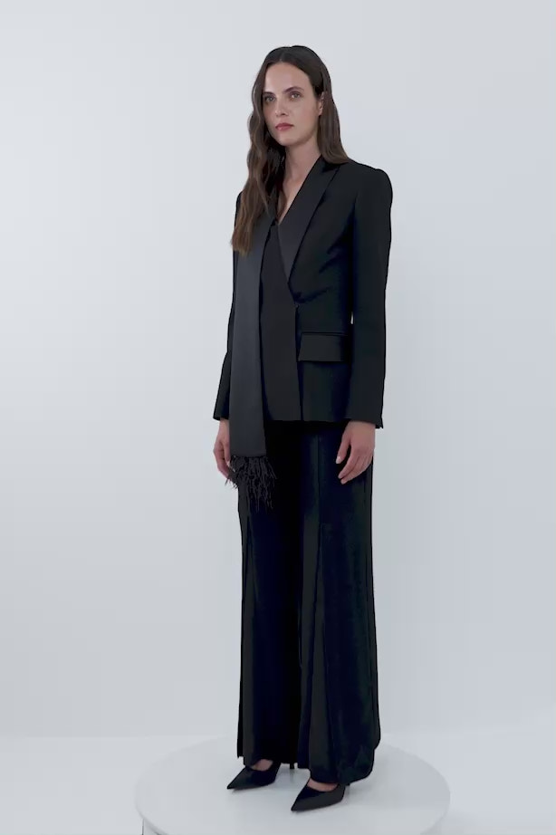Ön Ortası Yırtmaçlı Bol Paça Pantolon