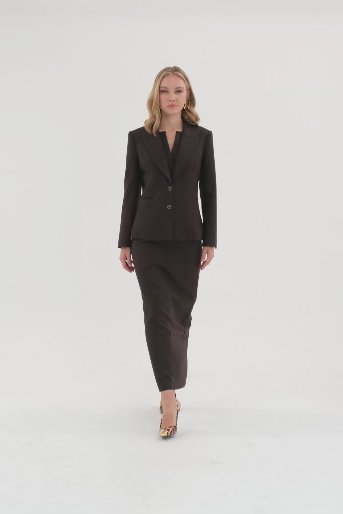 Önden Düğmeli Fileto Cepli Kadın Ceket