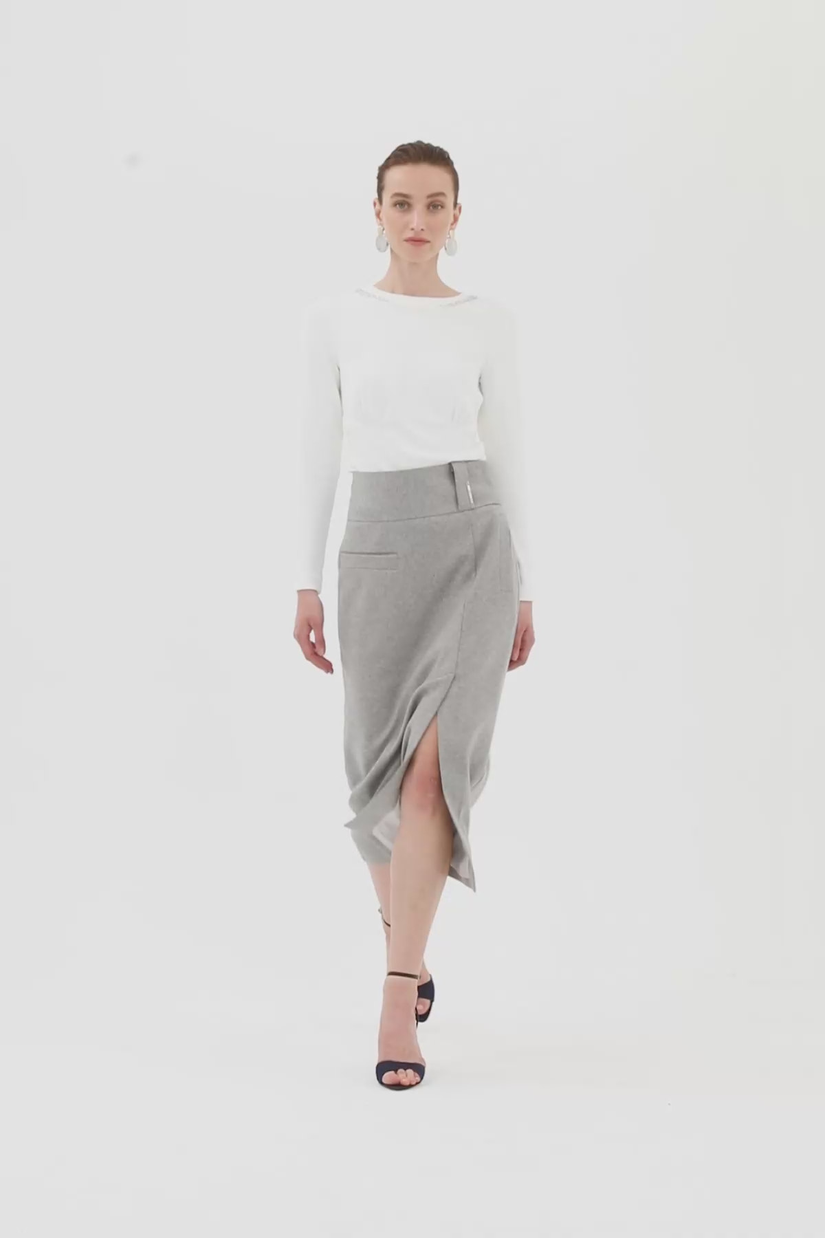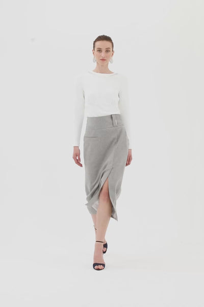 Önden Kapalı Yırtmaçlı Cepli Kemer Detaylı Etek
