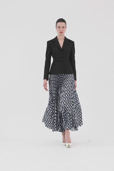 Önü Gizli Patlı Cepli Ceket Eteği Pliseli Kemerli Takım