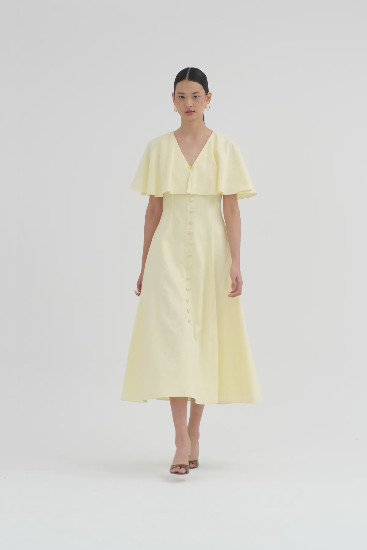 Pelerin Detaylı İşlemeli Sarı Elbise