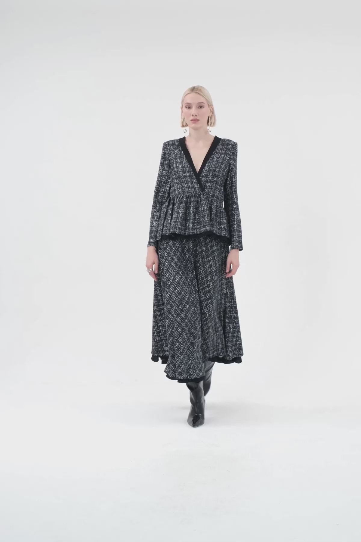 Pileli Ceket Ve Volanlı Uzun Etekli Takım