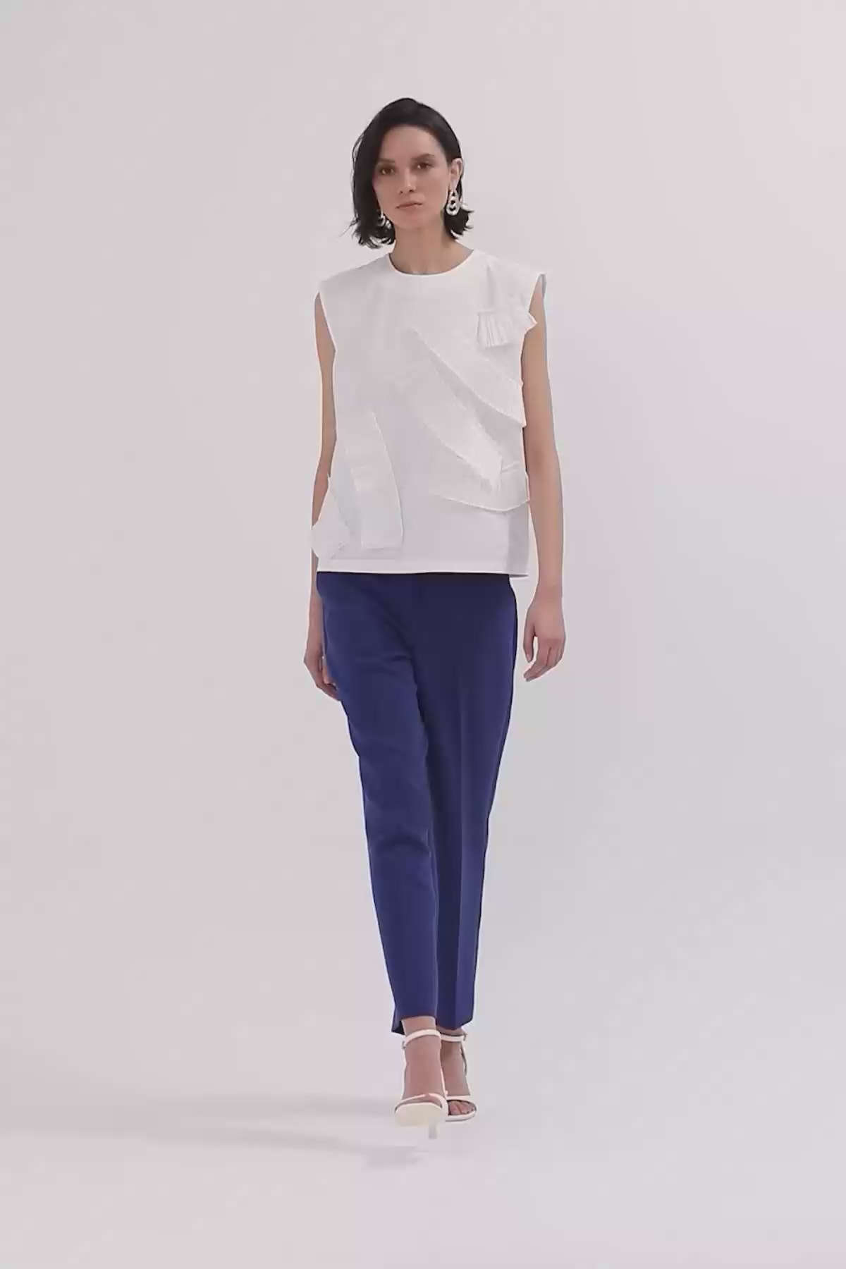 Plise Parça Detaylı Sıfır Kollu Bluz