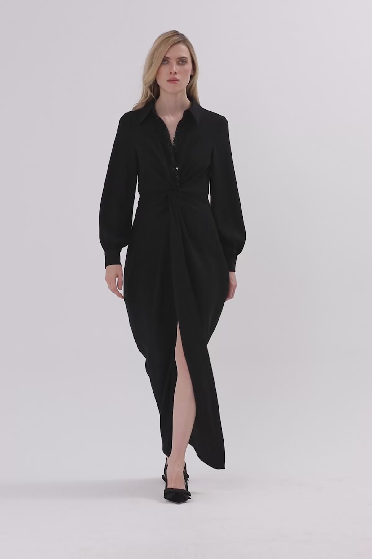 Pul Boncuk İşlemeli Uzun Elbise