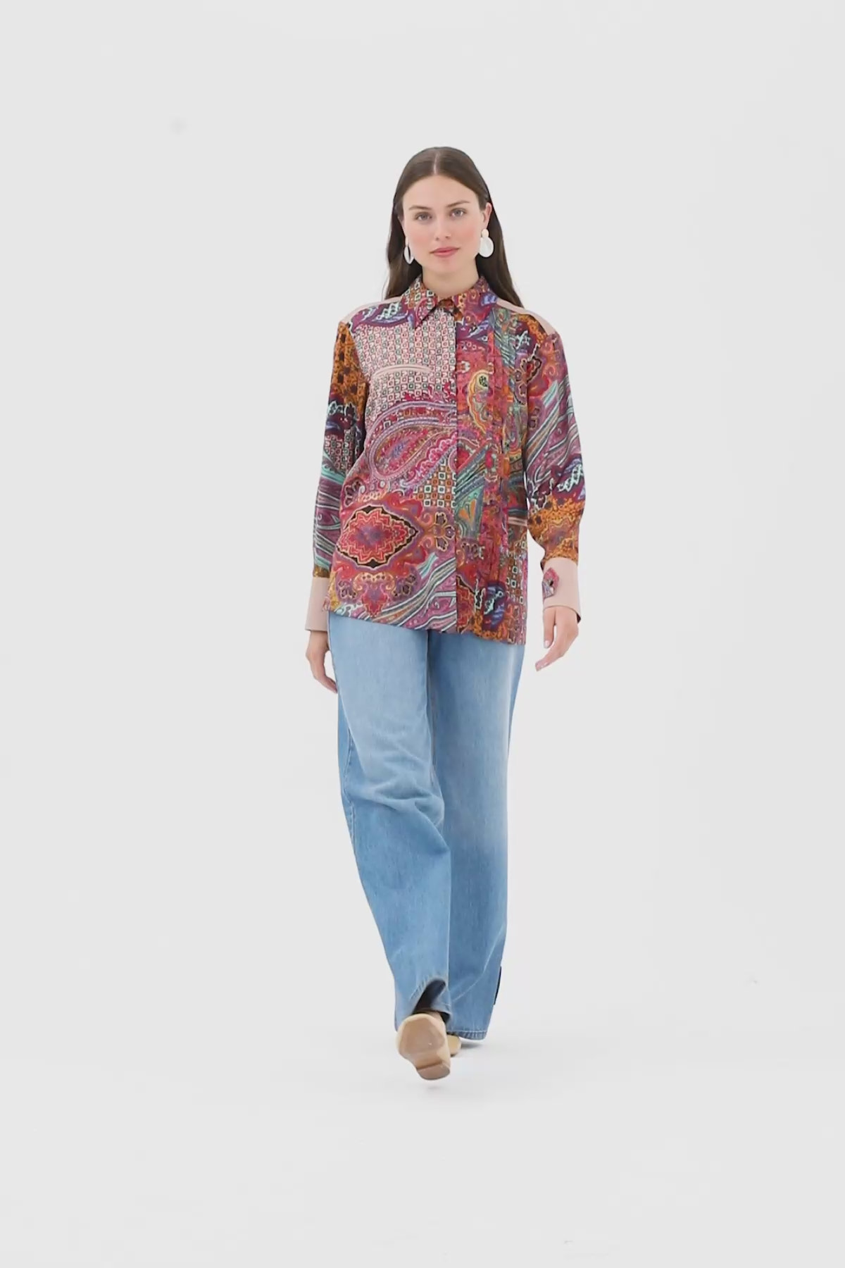 Gömlek Yakalı Arkası Pile Detaylı Gömlek