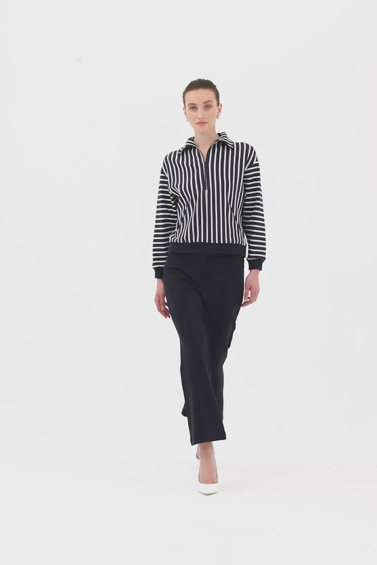 Gömlek Yakalı Fermuarlı Cep Detaylı Bluz