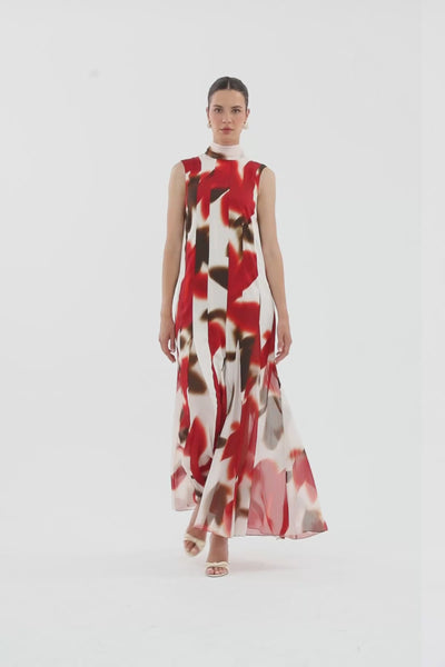 Şal Uçları İşlemeli Desenli Maxi Elbise