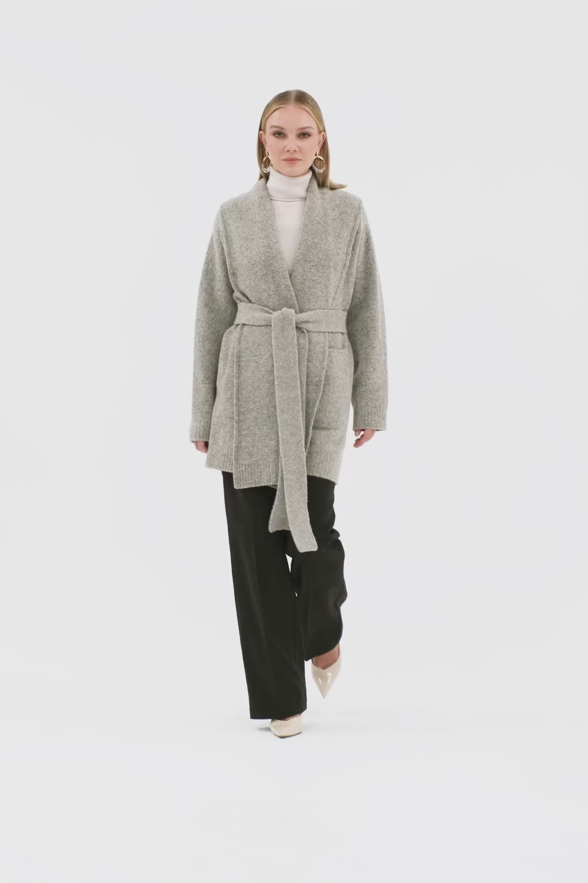 Şal Yaka Aplike Cepli Uzun Kollu Hırka