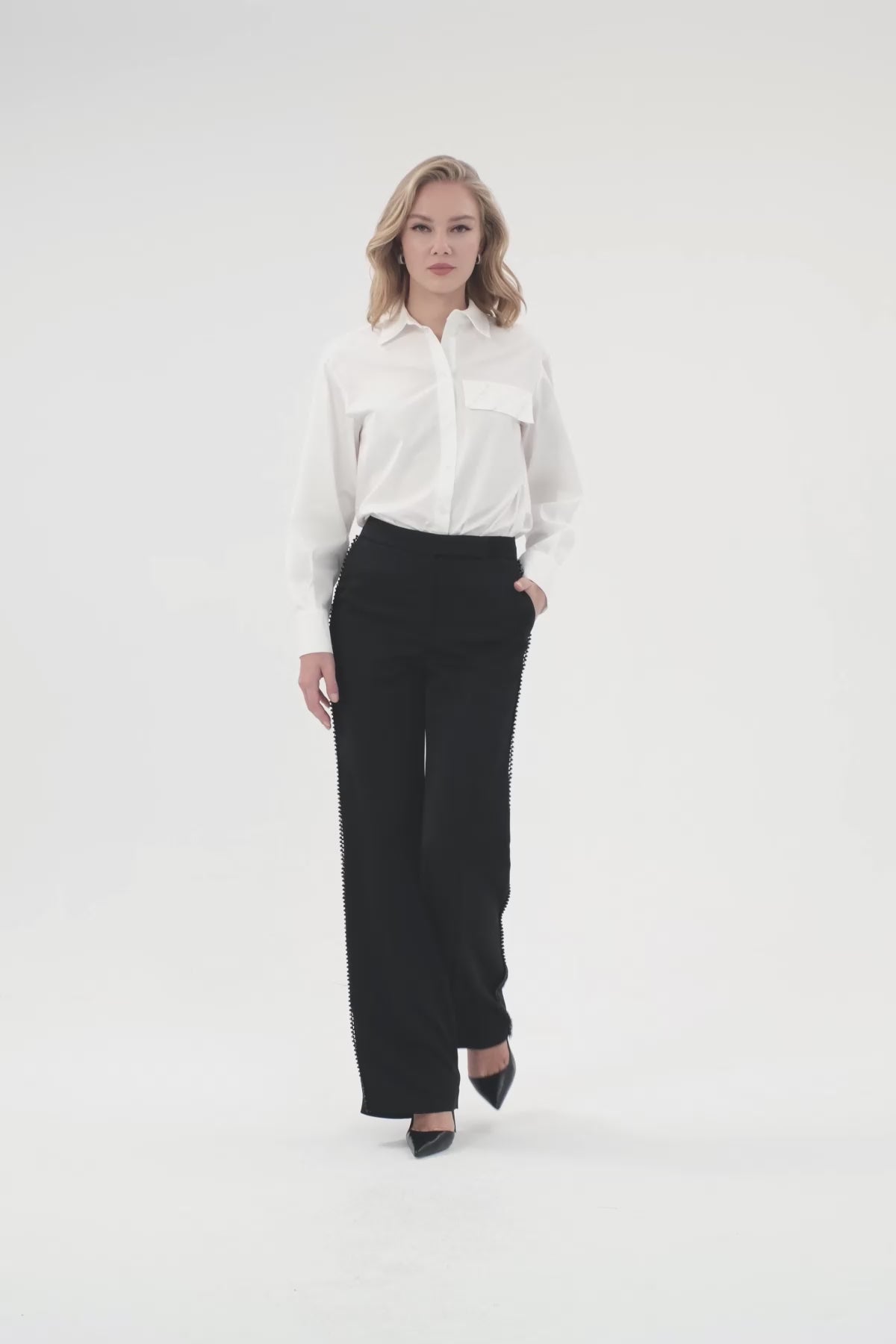 Şerit Aksesuarlı Agraf Kapamalı Pantolon