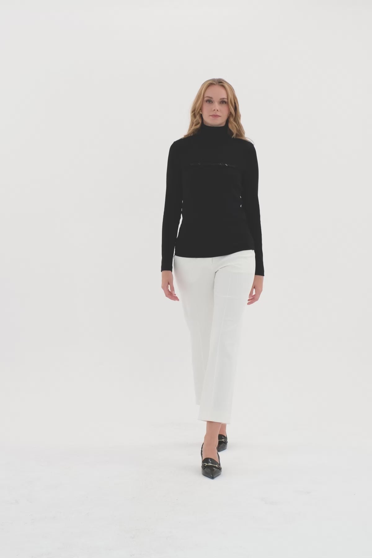 Boğazlı Boncuk İşleme Datylı Uzun Kollu Bluz