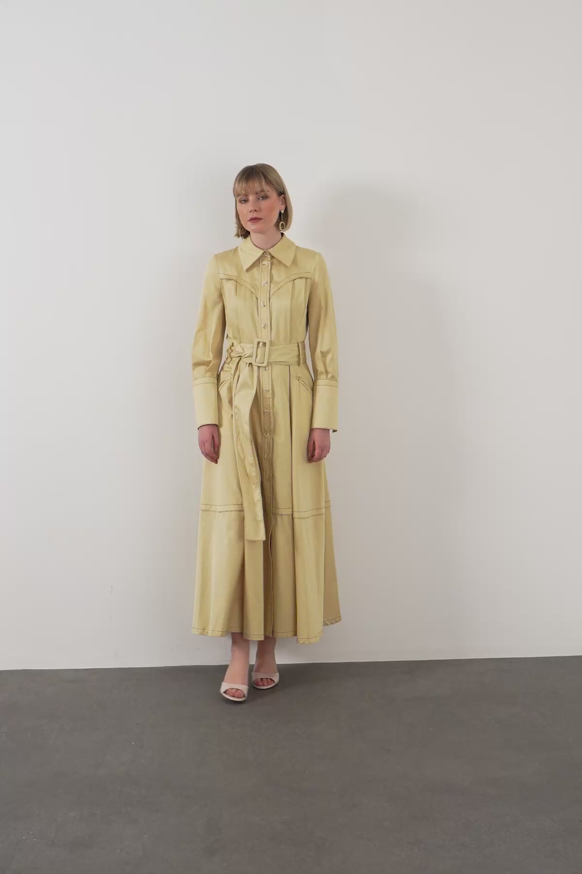 Seyyar Kuşaklı Astarsız Maxi Elbise