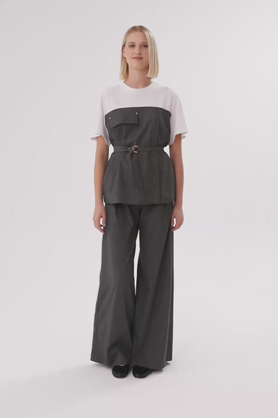 Seyyar Kuşaklı Göğüs Üstü Kesikli Yandan Yırtmaçlı Kısa Kollu Bluz