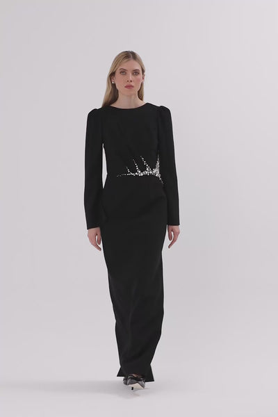Sırt Detaylı İşlemeli Siyah Uzun Elbise