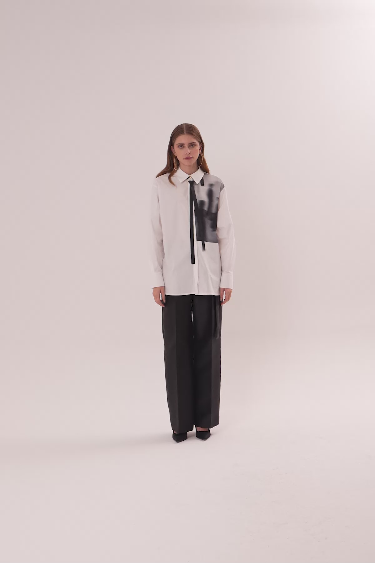 Sol Ön Kısmı Baskılı Yakası Şerit Detaylı Klasik Gömlek