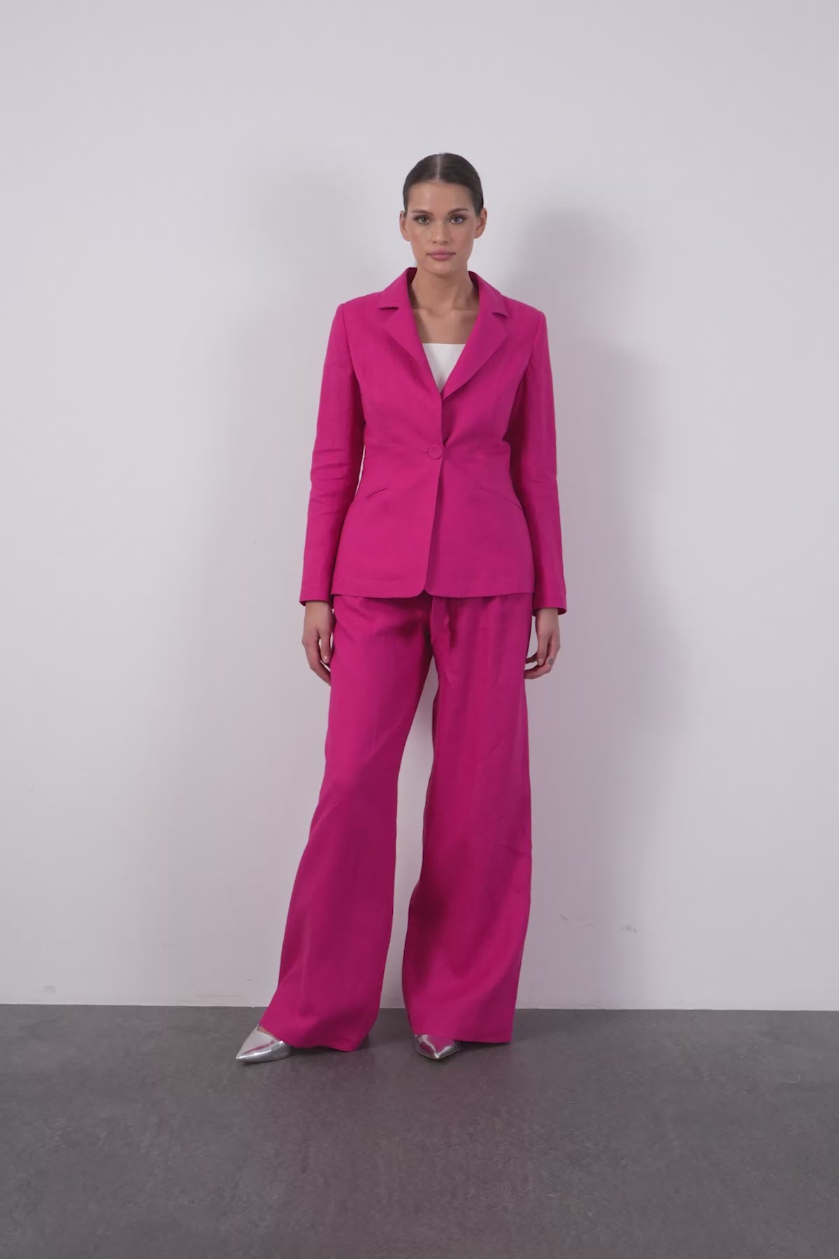 Tek Düğme Kapamalı Uzun Kol Koyu Keten Ceket