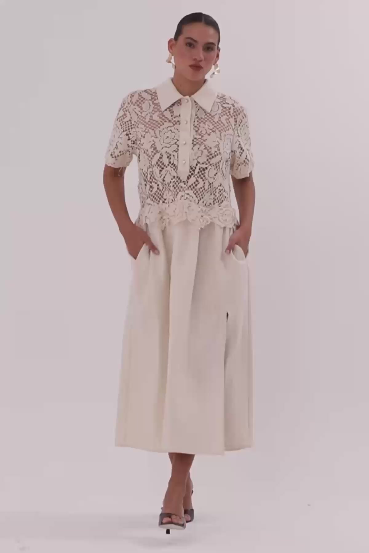 Üstü Dantelli Kısa Kollu Kemik Elbise