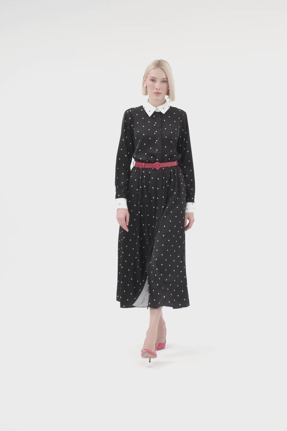 Uzun Kollu Düğmeli Kemerli Uzun Maxi Elbise