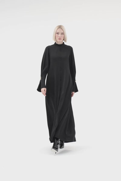 Uzun Kollu Fermuarlı Uzun Elbise