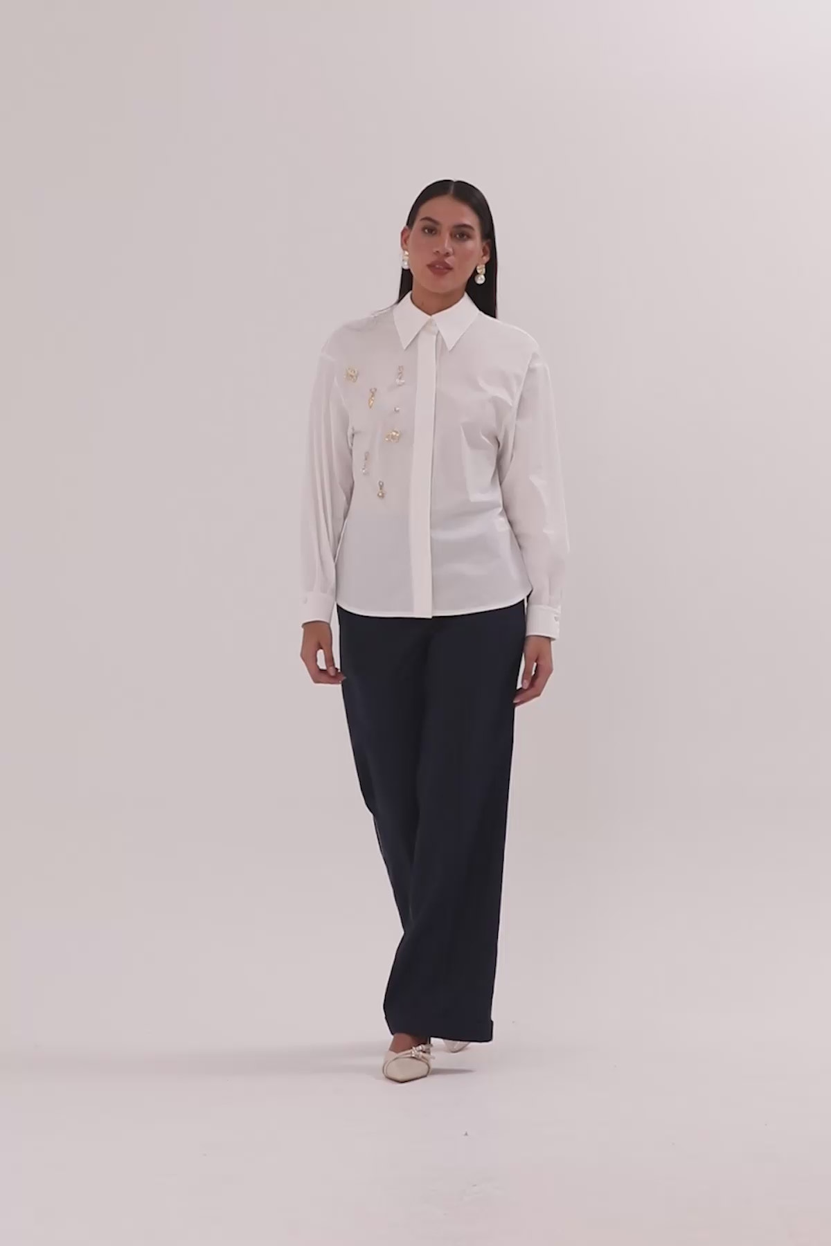 Uzun Kollu İşlemeli Gömlek