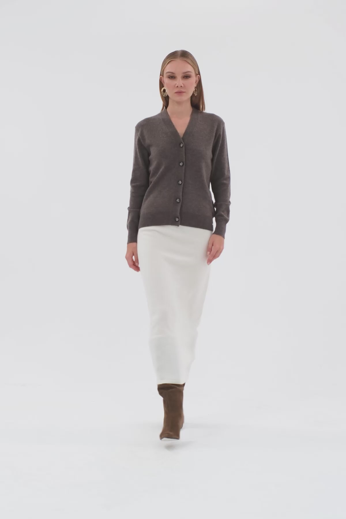 V Yaka Düğme Kapamalı Uzun Kollu Hırka