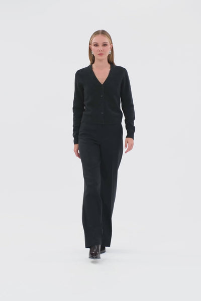 V Yaka Düğme Kapamalı Uzun Kollu Kadın Hırka