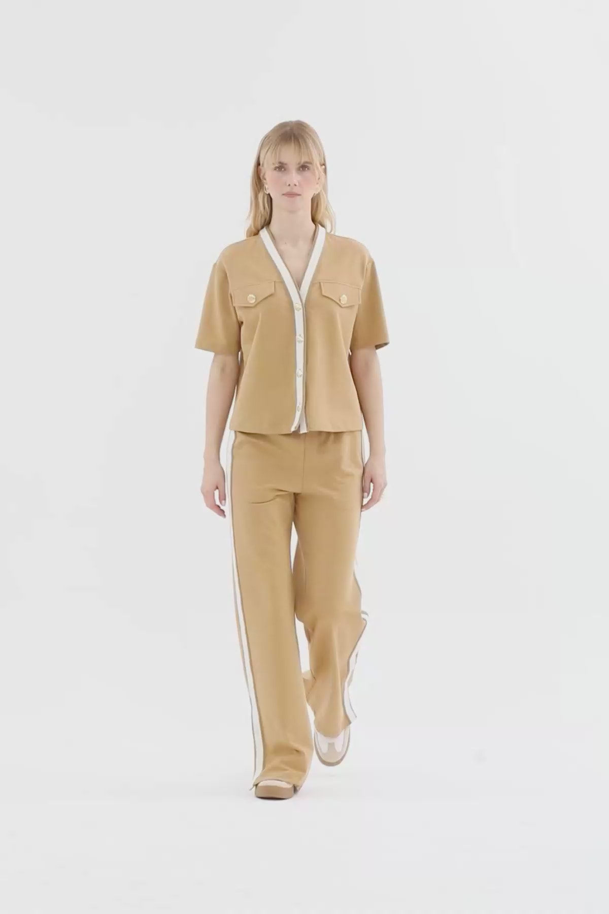 V Yaka Düğmeli Bol Paça Eşofman Takımı