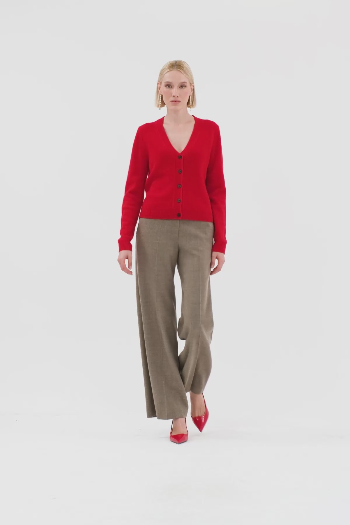 V Yaka Düğme Kapamalı Uzun Kollu Hırka